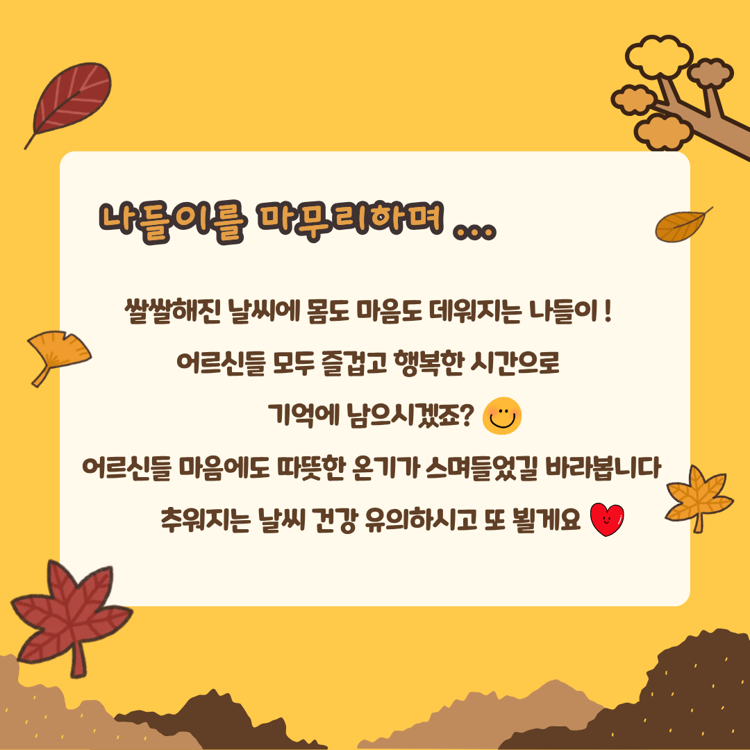 ![]() ![]() ![]() ![]() ![]() ![]() 2025³â 10¿ù 30ÀÏÀº °íµ¶»ç À§Ç豺 Áö¿ø»ç¾÷ ´Ù(Òý) ÇÔ²² ³îÀÚ, µ¿³× ÇÑ ¹ÙÄû - ´Ãº½¸¶½Ç ³ªµéÀÌ ³¯À̾ú½À´Ï´Ù~! ¾î¸£½ÅµéÀº À̸¥ ¾ÆÄ§ºÎÅÍ ¼³·¹ÀÌ´Â ¹ß°ÉÀ½À¸·Î º¹Áö°üÀ» ã¾ÆÁּ̽À´Ï´Ù À̹ø ³ªµéÀÌ¿¡¼ ´Ù¾çÇÑ Ã¼ÇèÀº ¹°·Ð, ½Ä¹°¿ø°ú Á¤¿ø »êÃ¥±îÁö Áñ±â°í ¿À¼Ì´ä´Ï´Ù µ¹¾Æ¿À´Â ±æ, ³ìÃʰ¡ µÈ ¸öÀ» À̲ø°íµµ "³Ê¹« Àç¹Õ¾ú¾î, ´ÙÀ½¿¡ ¶Ç µ¥·Á¿Í Áà. °í¸¶¿ö¿ä, ¼±»ý´Ôµé!"À̶ó°í ¸»¾¸ÇÏ½Ã¸ç ¹ß°ÉÀ½Àº °¡º¿ì¼Ì´ä´Ï´Ù ¾î¸£½Åµé, Ãß¿î ³¯¾¾ °Ç° Á¶½ÉÇÏ½Ã°í ³ªµéÀÌ ¶Ç °¡¿ä! |
